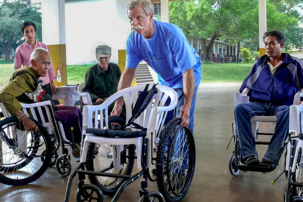 Die amerikanische gemeinnützige Organisation Free Wheelchair Mission hat Monoblocs zu Rollstühlen umgebaut, indem sie einen Metallrahmen mit Rädern daran befestigt hat. In Uganda wurden über eine Million dieses Hilfsmittels an Menschen verteilt, die sich keine herkömmlichen Rollstühle leisten konnten, und ermöglichen ihnen so ein unabhängigeres Leben. Der Film zeigt eine Frau, die ihre Beine nicht mehr benutzen konnte und nun einen Rollstuhl bekam. Bis dahin konnte sie nur auf dem Boden kriechen und musste von Familienmitgliedern getragen werden, um irgendwohin zu gelangen.