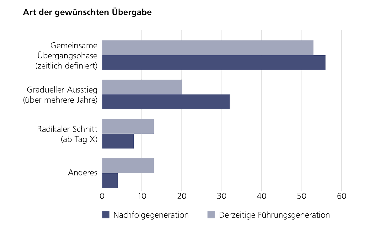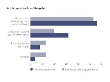 Die LGT Bank Österreich widmete sich auch dieses Jahr im Rahmen ihrer Initiative für Familienunternehmen einem anderen Fokusthema. Das Ziel der diesjährigen Studie war der Vergleich von etwaigen unterschiedlichen Sichtweisen der derzeitigen Führungsgeneration und jener der Nachfolge Generation auf für das Unternehmen wichtige Themestellungen. Dabei interessierte die Grundeinstellung zu Familie und Unternehmen, die notwendigen Qualifikationen und Ausbildungen für einen Einstieg in das Unternehmen, etwaige Hürden sowie die konkrete Übergabe und deren Erfolgsfaktoren. Zusätzlich wurde auch das Thema einer Familienverfassung und die Vertrautheit der Befragten mit dem Thema behandelt. Befragt wurden dabei zwischen Juli und Oktober 2021 über 70 Familienunternehmen aus Österreich. Dabei waren 45 derzeitige Führungskräfte und 25 Mitglieder der Nachfolgegeneration.