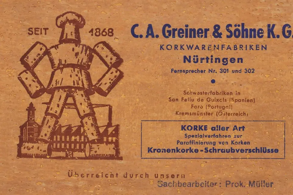 Imaginative: business card made of cork © Wirtschaftsarchiv Baden-Württemberg