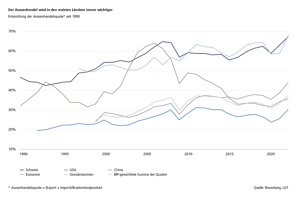 Anpassungen können gerade für kleine, offene Volkswirtschaften wie die Schweiz oder Liechtenstein nötig werden. Doch ein Blick zurück zeigt, dass die globale Vernetzung der wichtigsten Ökonomien in den grenzüberschreitenden Waren- und Dienstleistungsverkehr insgesamt zugenommen hat. Dies bleibt auch die Hoffnung für die Zukunft.