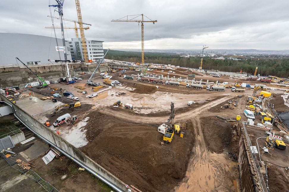 On- und Reshoring: Unternehmen holen wichtige Komponenten zurück ins Heimatland, wie hier bei einem Neubau für die Halbleiterfertigung von Infineon in Dresden, oder verteilen die Produktion auf mehrere Märkte. © Keystone/DPA/Robert Michael