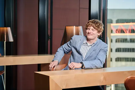 Hier sehen sie Richard Socher an einem Tisch sitzend.