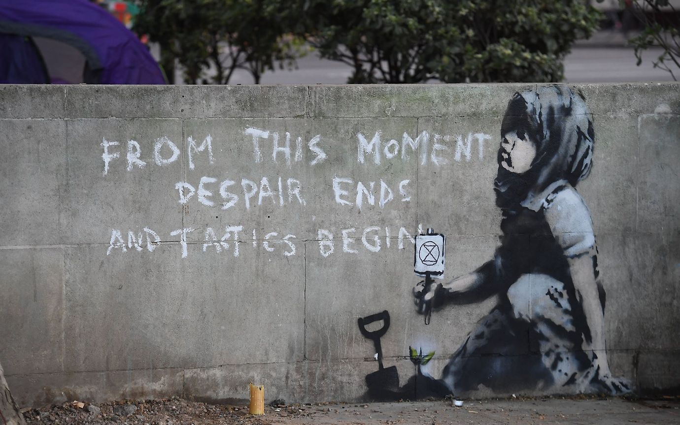 "Shut Down London": Werk der Extinction Rebellion während der Demonstrationen in der City. © Nigel Dickinson/Polaris/laif