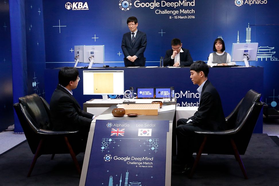 Auf der anderen Seite des Spielbretts: Ein Mann. Doch er ist nur ein Stellvertreter, befolgt Anweisungen auf einem Screen. Und fungiert damit quasi als Arm von AlphaGo, einem maschinellen Lernsystem, das von Forschenden des in London ansässigen KI-Start-ups DeepMind zu einem einzigen Zweck entwickelt worden ist: im Go-Spiel jeden Menschen zu übertrumpfen.
