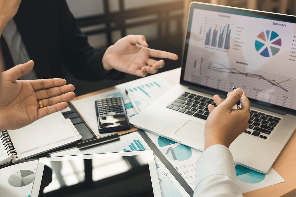 Zwei Personen interpretieren Daten, die auf einem Bildschirm vor ihnen erscheinen.