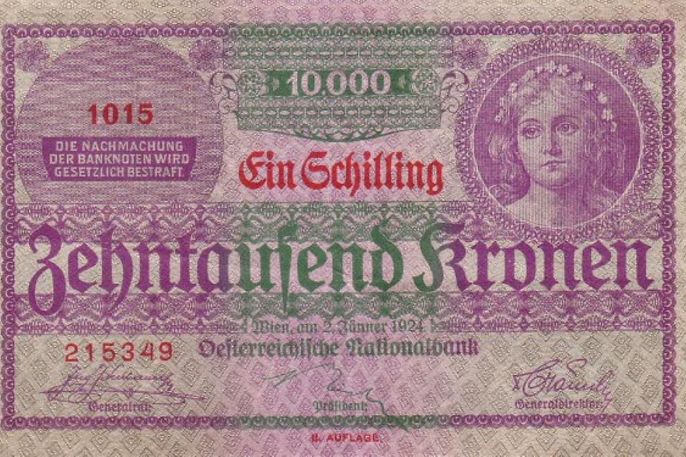 Was ist geschehen? Ebenso wie in Deutschland hat der Erste Weltkrieg auch in Österreich eine Hyperinflation zur Folge. Zwischen 1914 und 1921 verdoppeln sich die Preise Jahr für Jahr. Im Herbst 1921 fällt die Inflation in den Galopp und erreicht über 50 Prozent pro Monat, ab August 1922 gar mehr als 100 Prozent pro Monat. Mittlerweile betragen die Lebenshaltungskosten in Österreich das Vierzehntausendfache der Vorkriegszeit. Verdientes oder Erspartes wird so rasch wie möglich ausgegeben oder in Devisen umgetauscht, als Brieftaschen dienen Wäschekörbe.