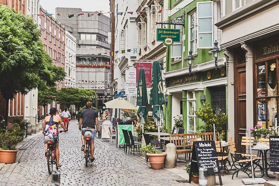 Zwei Menschen auf dem Fahrrad in der Hamburger Altstadt