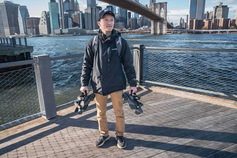 Xunjie Zhang ist ein weiterer an der CMU ausgebildeter Robotikexperte, der ebenfalls seine akademischen Verbindungen genutzt hat, um ein Start-up zu gründen. Seine Firma Shift Robotics hat so genannte “Moonwalkers” von der Idee bis zur Marktreife entwickelt. Die elektrischen Rollerblades passen unter jeden Schuh und lassen Fussgänger mit dem Zwei- bis Dreifachen ihrer normalen Gehgeschwindigkeit über Bürgersteige gleiten.