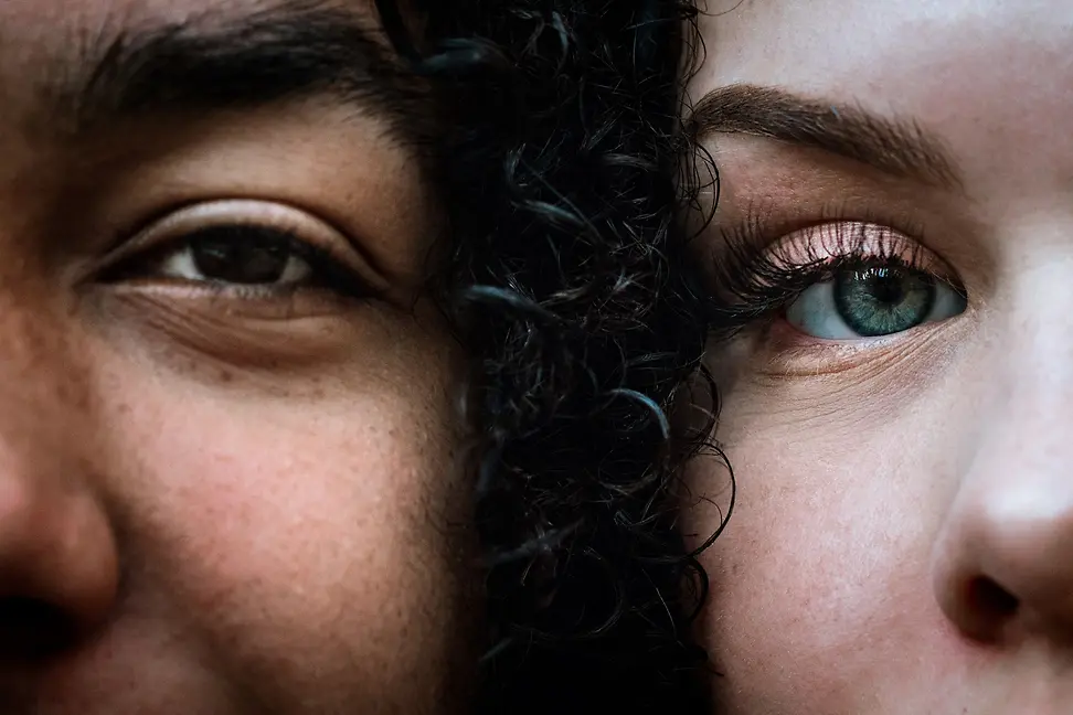 Zwei Menschen nebeneinander in Grossaufnahme