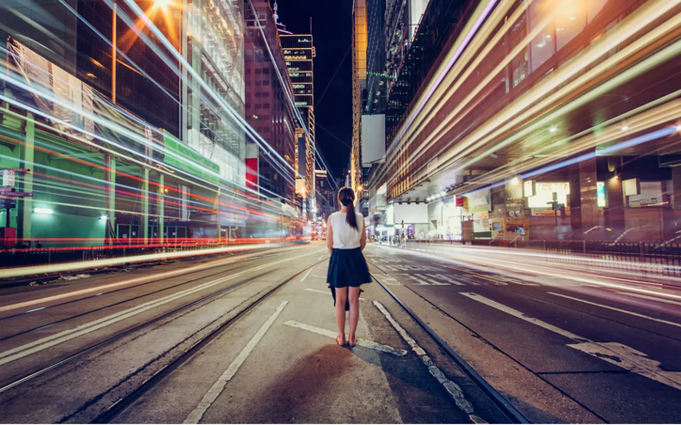 Frau in Stadt: Warum der Sound der Städte so fasziniert