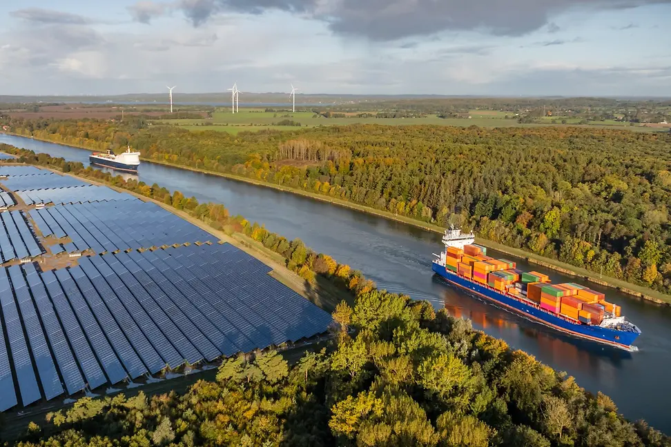 Während herkömmliche Transportformen essenziell bleiben, zeigt sich im Energiesektor eine wachsende Präsenz von Solar- und Windkraft, was die Dekarbonisierung vorantreibt. © Shutterstock/Snapshot Freddy