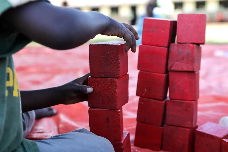 Die Materialien der Spielboxen sind so konzipiert, dass die einzelnen Bausteine einfach nachgebaut und ersetzt werden können. © Hajarah Nalwadda