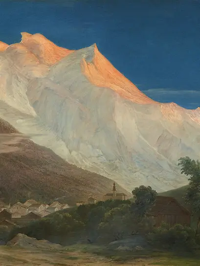 Picture showing the Valley of Chamonix with snowy Mont Blanc, painted in 1848.