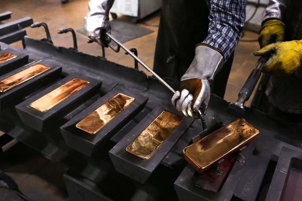 As the most defensive of asset classes, gold - seen here at a refinery being formed into bars - glitters amid geopolitical uncertainty. Ā© Getty Images/Andrew Rudakov/Bloomberg