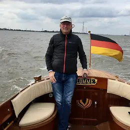 This is the most beautiful city in the world, says Jörg Finck from LGT in Hamburg, here on his tucker boat.
