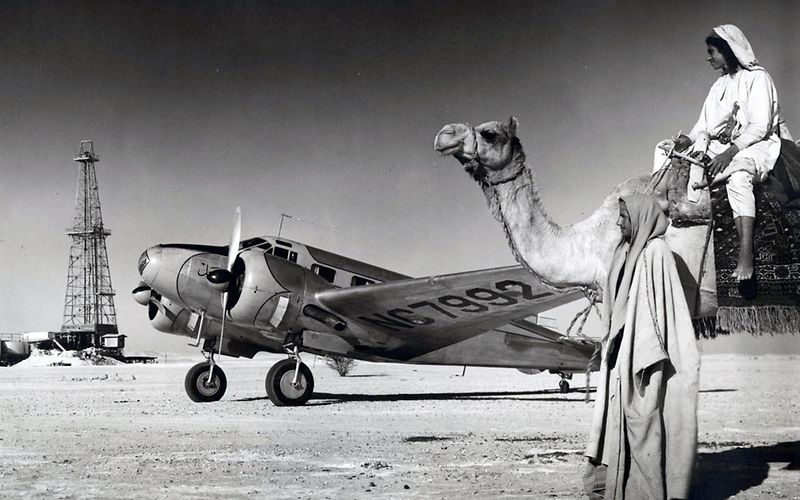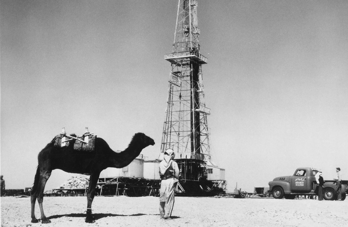Man and camel close to an oil well in 1940s Saudi Arabia. © GettyImages, Universal History Archive