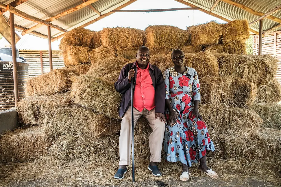 These words could sound boastful, but coming from her, they don't. They sound like hard-earned pride at having made it. She no longer has to fear the next drought. "I have enough feed stored for two years", she says. "And I'm working towards making that four."