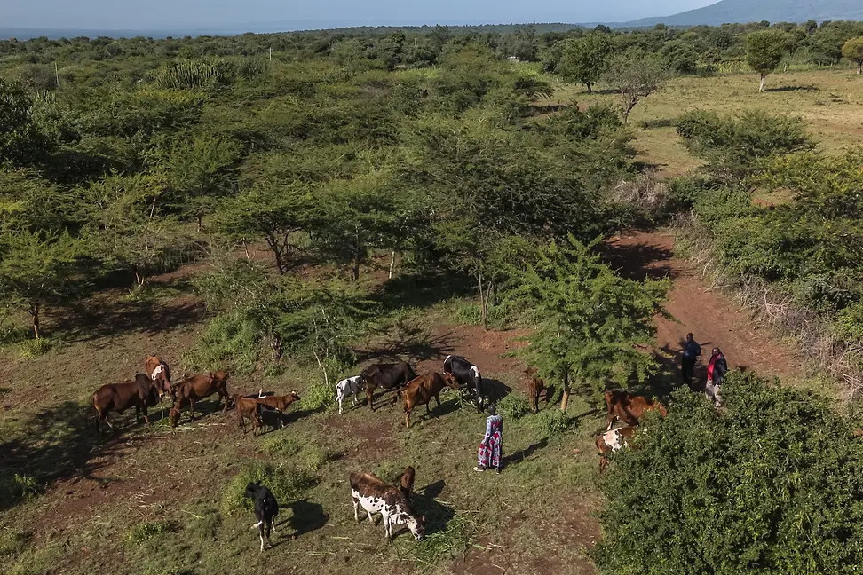 Then, in 2015, came a turning point. Through training organised by the international aid organisation World Vision, Kemboi learned how to restore degraded land - by allowing seeds scattered by animals to sprout, and by nurturing the tiny shoots that emerge from the stumps of uprooted trees. The method, known as Farmer Managed Natural Regeneration (FMNR), involves protecting young growth from grazing, and pruning it so it can develop into strong trees. The results of her efforts are now visible across her pasture.