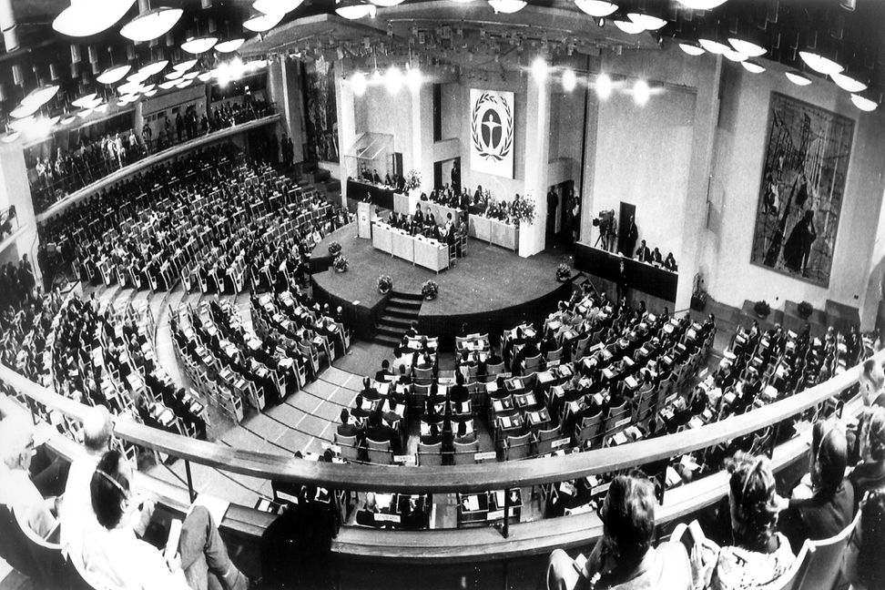 At the first UN environmental conference in 1972 in Stockholm, delegates from around the world gathered to discuss global environmental issues - yet climate change remained a footnote. © Keystone/ DPA/Str