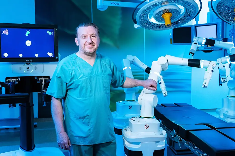 Normally, the specialist in minimally invasive surgery would have had to stand in the operating room for hours to perform a series of complex steps with long, rod-shaped instruments. Now he could leave the physically demanding work to the machine and control the instruments remotely with absolute precision."The robot is really the next step"” says the 51-year-old. "We now have the ability to work even more precisely, even more effectively."