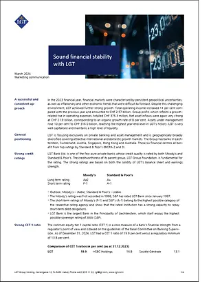In our brochures we present ourselves, our services, our products and some of our locations. We also shed some light on interesting topical issues such as LGT’s financial stability in factsheets.