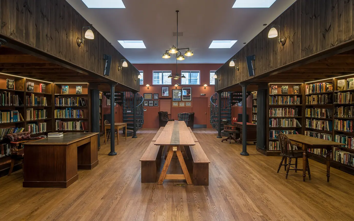 Bücher auf einem Tisch in der Library of Mistakes in Edinburgh