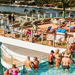 Die Kreuzfahrtindustrie hat einen noch grösseren CO2-Fussabdruck pro Person. Untersuchungen des International Council on Clean Transportation haben ergeben, dass jeder und jede Reisende etwa doppelt so viel Kohlendioxid verursacht wie jemand, der fliegt und für die gleiche Zeit ein Hotelzimmer mietet.