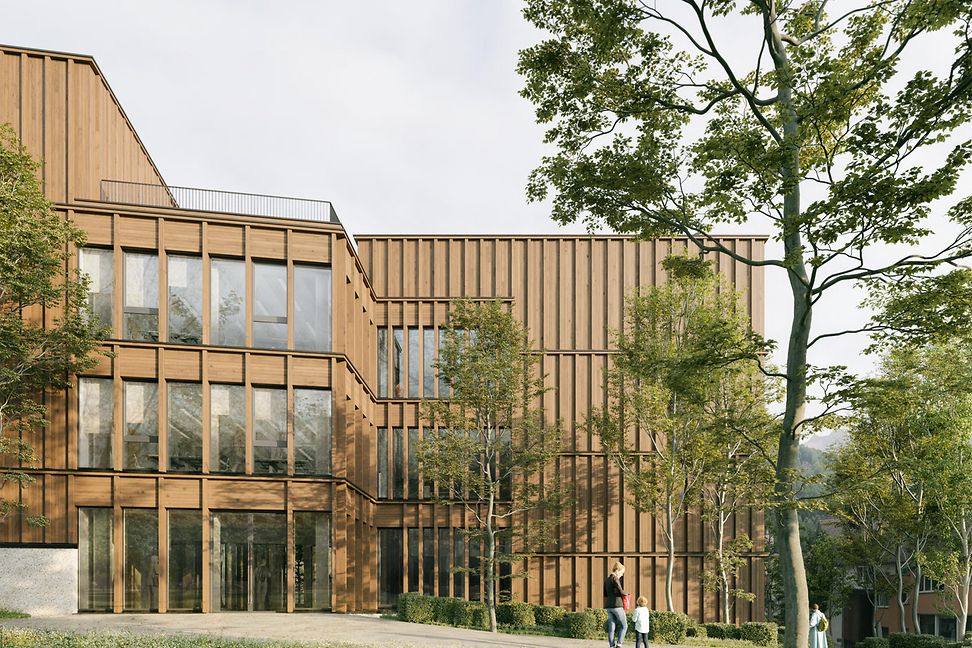 Der vom zürcherischen Architekturbüro Fischer Architekten projektierte Neubau fügt sich mit feiner Masstäblichkeit und einer schönen Höhenstaffelung um jeweils ein halbes Geschoss gut in die beengte Situation zwischen der Egertastrasse, Altenbach und Herrengasse ein. Er wird von der Planungs- und Bauphase über die Inbetriebnahme und den regulären Betrieb bis hin zur Erhaltung und Renovation konsequent nachhaltig ausgerichtet sein und die höchsten internationalen Zertifizierungsstandards im Umweltbereich erfüllen (LEED-Platinum, SNBS-Gold). Der Bau wird an das Fernenergienetz angeschlossen sein und bei der Materialisierung wird mit der Verwendung von regionalen Hölzern für die Sichtfassade ebenfalls grosser Wert auf Nachhaltigkeit gelegt.
