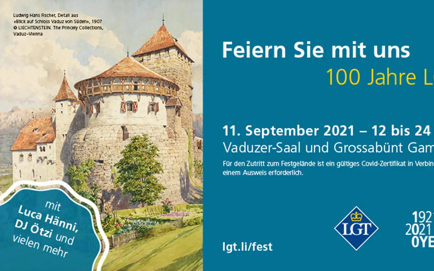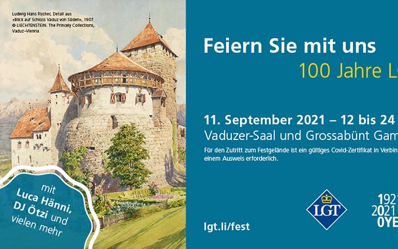 Die LGT wird 100 und feiert ihren runden Geburtstag am 11. September 2021 mit einem Volksfest, zu dem die ganze Liechtensteiner Bevölkerung eingeladen ist. Neben Livekonzerten in Vaduz und Gamprin-Bendern wird es ab 12 Uhr mittags zahlreiche Attraktionen für Gross und Klein und ein vielseitiges Angebot an Speisen und Getränken geben.