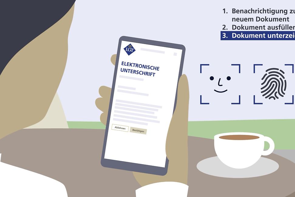 With eSignature you can fill out and sign documents quickly and easily in LGT SmartBanking. Find out how eSignature works in the video. Text instructions are additionally available below the video.